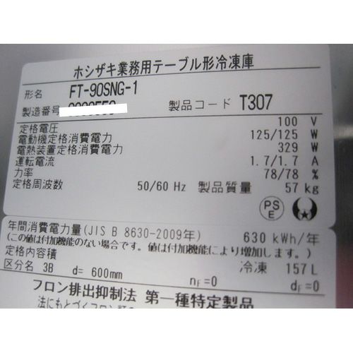 他の画像を見る 委託先様からの配送です。 【中古】冷凍コールドテーブル ホシザキ FT-90SNG-1 幅900×奥行600×高さ800 【送料別途見積】【業務用】【委託販売-yck】 販売価格 ¥ 184,000 税込