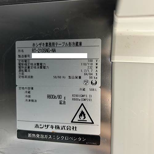 他の画像を見る 直接引取の場合は送料追加なし【鈴鹿店】 【業界最長1年保証】【中古】冷蔵コールドテーブル ホシザキ RT-210SNG-NA 幅2100×奥行600×高さ800 【送料別途見積】【業務用】【鈴鹿店在庫】 販売価格 ¥ 184,800 税込