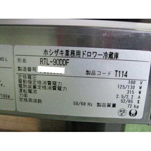 他の画像を見る 委託先様からの配送です。 【中古】冷蔵ドロワーコールドテーブル ホシザキ RTL-90DDF 幅900×奥行750×高さ570 【送料別途見積】【未使用品】【業務用】【委託販売-yck】 販売価格 ¥ 112,701 税込