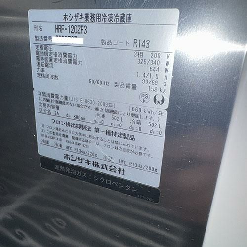 他の画像を見る 委託先様からの配送です。 【中古】冷凍冷蔵庫 1凍3蔵 ホシザキ HRF-120AT3 幅1200×奥行650×高さ1910 【送料別途見積】【業務用】【委託販売-yck】 販売価格 ¥ 253,000 税込