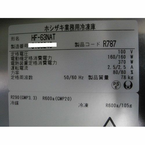 他の画像を見る 委託先様からの配送です。 【中古】冷凍庫 ホシザキ HF-63NAT 幅625×奥行650×高さ1910 【送料別途見積】【業務用】【委託販売-yck】 販売価格 ¥ 241,500 税込