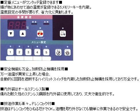 他の画像を見る 優れた安全性と充実の調理機能を搭載!遠赤外線で美味しく揚がる電気フライヤー! MEF-5TE 【マルゼン】 電気フライヤー 5L 卓上タイプ 幅300×奥行420×高さ200(mm) 【業務用/新品】【送料無料】 定価 ¥ 324,500 (税込)のところ 販売価格 ¥ 169,301 税込 詳細を見る