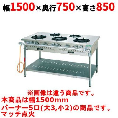 トップバーナφ180×3・φ125×2、使用最大鍋寸法(径)(mm)φ180×360・φ125:330(300※)、JIA認証:○