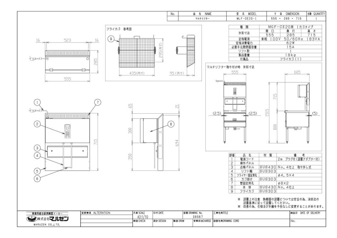 他の画像を見る MLF-CE20-1 【マルゼン】 マルチリフター MGF-CE20用 1カゴタイプ 単相100V 幅555×奥行285×高さ715(mm) 【業務用/新品】【送料無料】 定価 ¥ 250,800 (税込)のところ 販売価格 ¥ 142,429 税込 詳細を見る