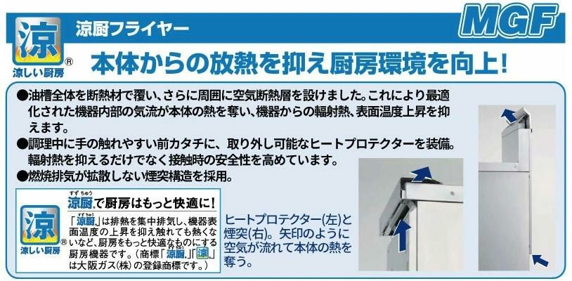 他の画像を見る MGF-C40K 【マルゼン】 涼厨フライヤー 40L 幅880×奥行610×高さ800(mm) 【業務用/新品】【送料無料】 定価 ¥ 345,400 (税込)のところ 販売価格 ¥ 177,925 税込 詳細を見る