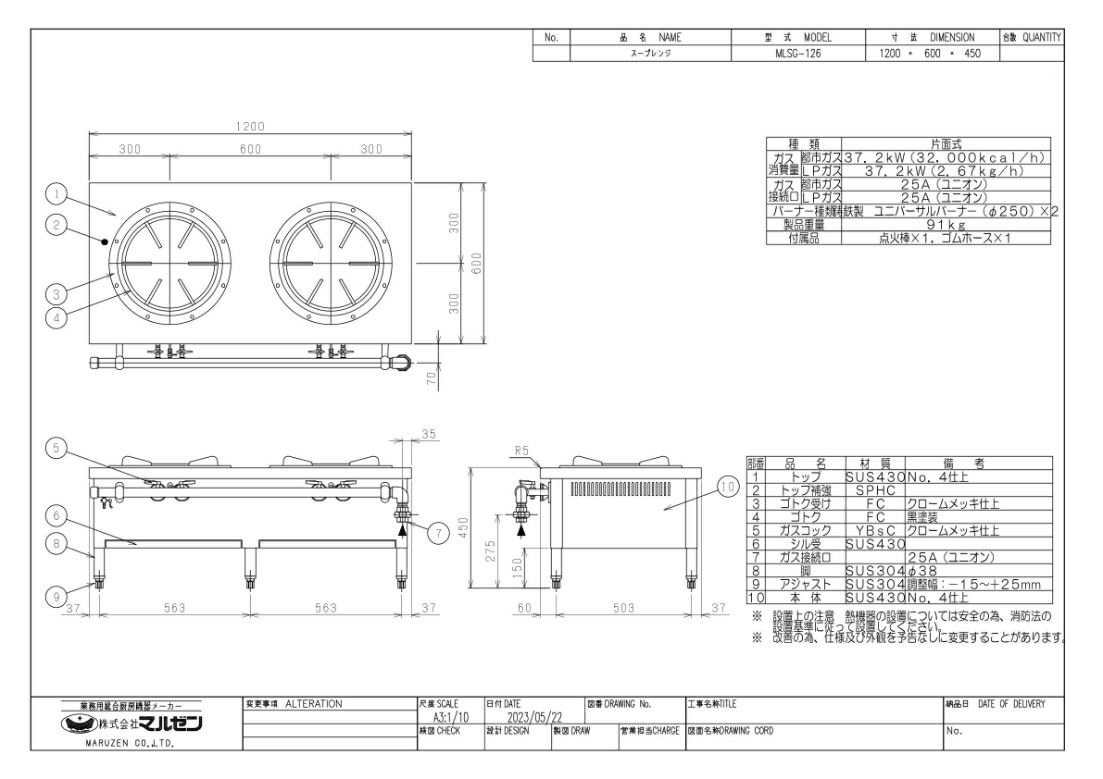 他の画像を見る 【業務用/新品】【マルゼン】外管式スープレンジ MLSG-126 幅1200×奥行600×高さ450(mm)【送料無料】 定価 ¥ 152,900 (税込)のところ 販売価格 ¥ 71,577 税込 詳細を見る