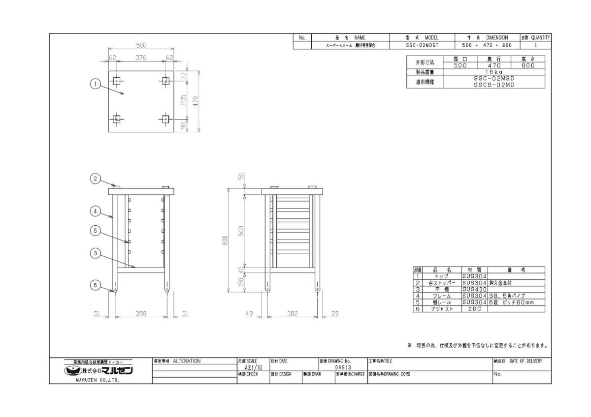 他の画像を見る 【業務用/新品】【マルゼン】スチームコンベクションオーブン専用架台 SSC-02MDT 幅500×奥行470×高さ800mm【送料無料】 定価 ¥ 57,200 (税込)のところ 販売価格 ¥ 30,350 税込 詳細を見る