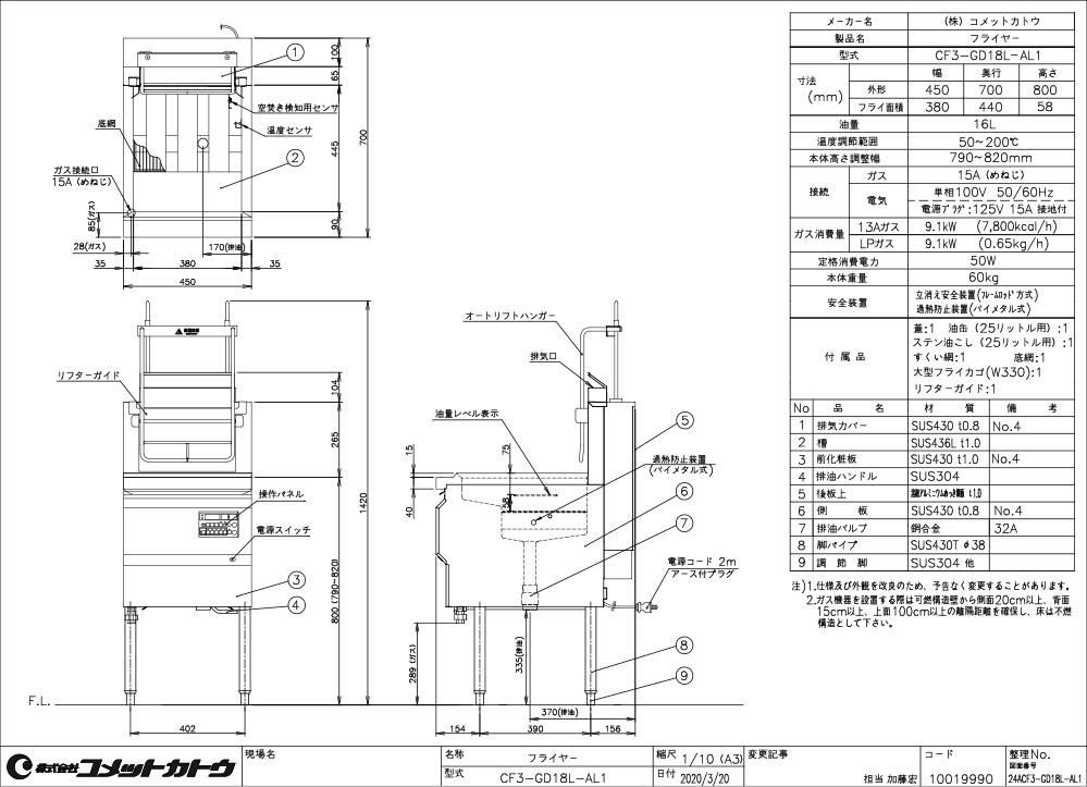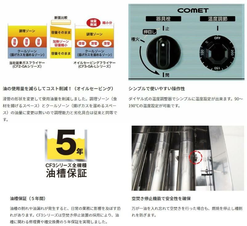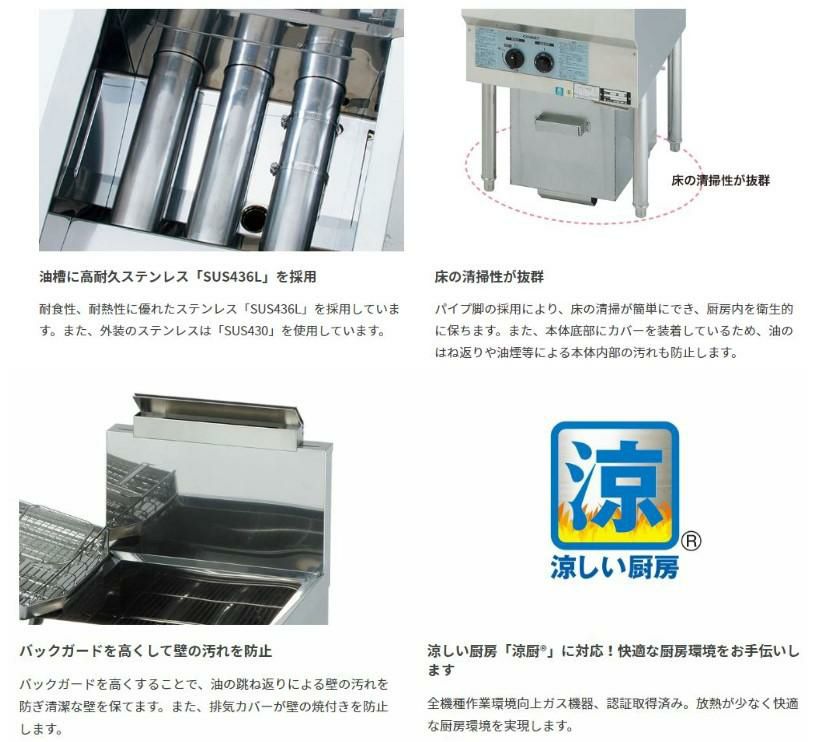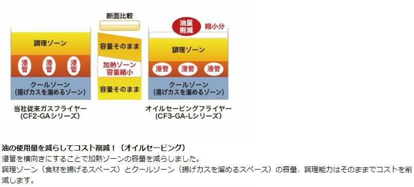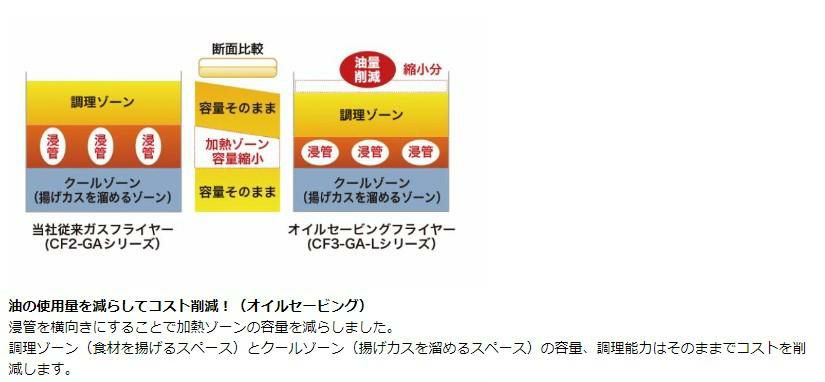 他の画像を見る 【業務用/新品】CF4-GA27L(旧CF3-GA27-L23)【コメットカトウ】 【ガスフライヤー】オイルセービングフライヤー23L /一槽式 / 幅650X奥行600X高さ800 定価 ¥ 429,000 (税込)のところ 販売価格 ¥ 215,095 税込 詳細を見る