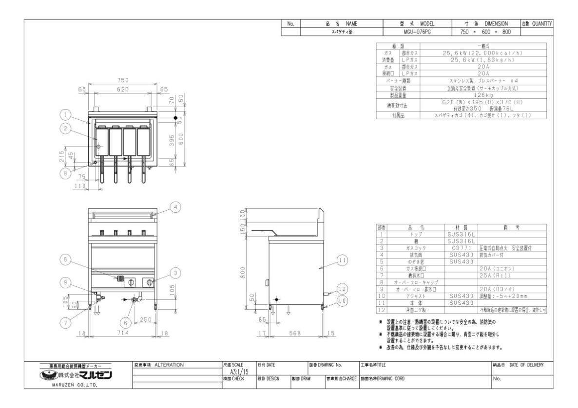 他の画像を見る 【業務用/新品】【マルゼン】スパゲティ釜 MGU-076PG 幅750×奥行630×高さ800mm【送料無料】 定価 ¥ 613,800 (税込)のところ 販売価格 ¥ 332,046 税込 詳細を見る