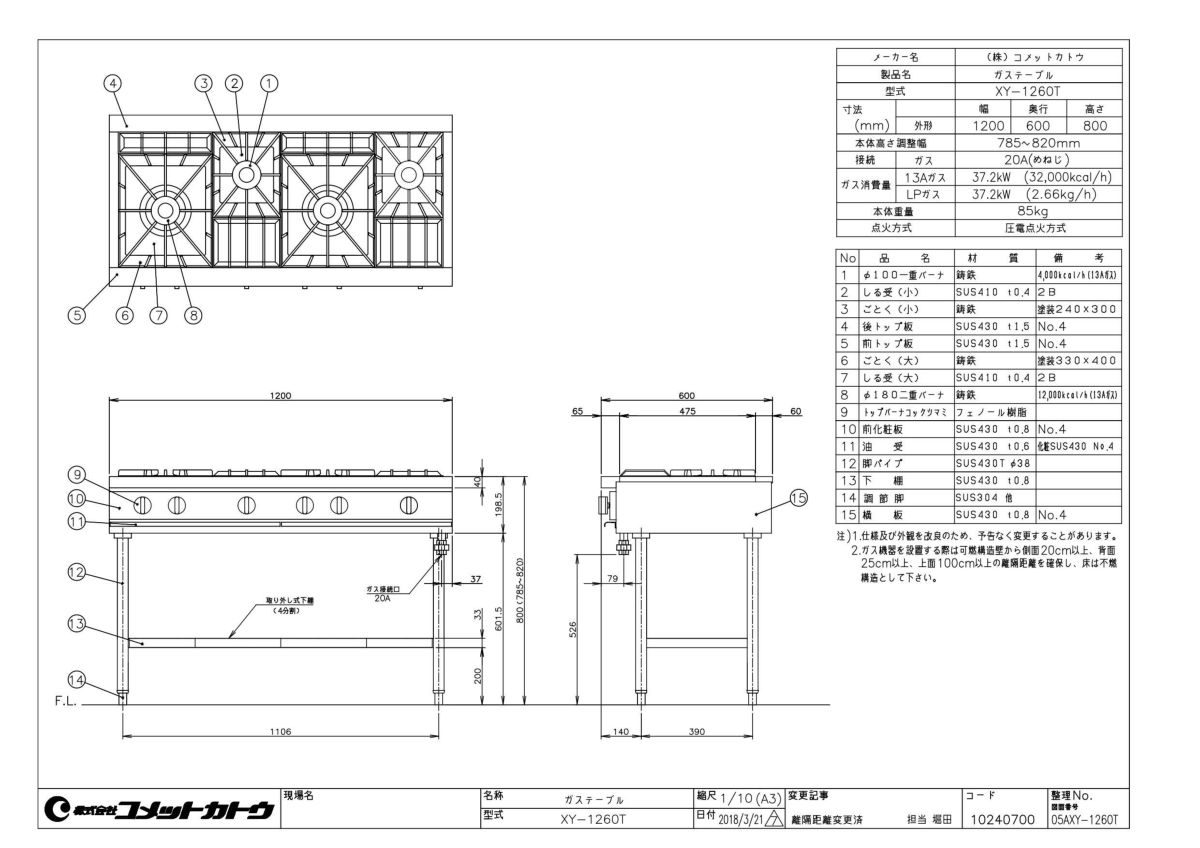 他の画像を見る 【業務用/新品】【コメットカトウ】ガステーブル 4口 XY-1260T 幅1200×奥行600×高さ800mm(mm)【送料無料】 定価 ¥ 308,000 (税込)のところ 販売価格 ¥ 157,807 税込 詳細を見る