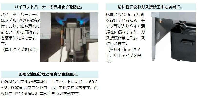 他の画像を見る DF-020 サミー ガスフライヤー 20L スタンドタイプ 段落ち式 フライヤー 13A 幅450×奥行600×高さ800(mm) 【業務用/新品】【送料無料】 定価 ¥ 245,300 (税込)のところ 販売価格 ¥ 196,240 税込 詳細を見る