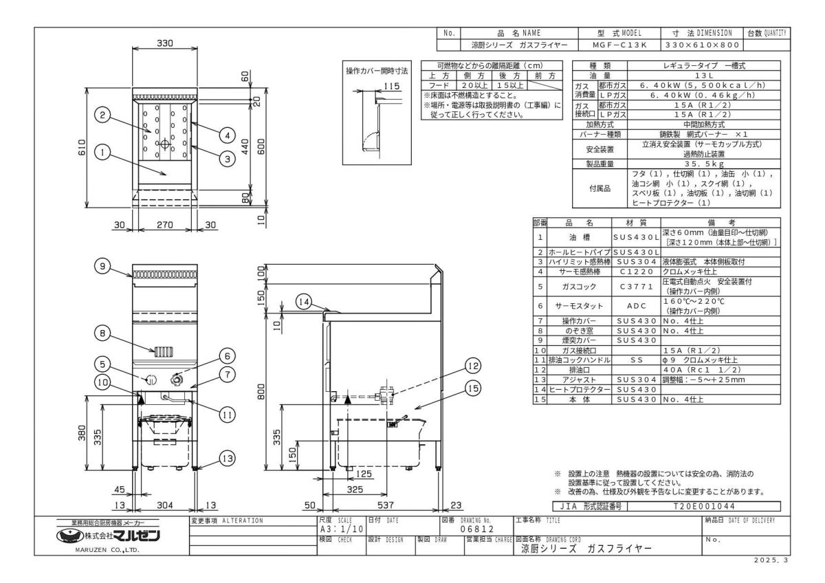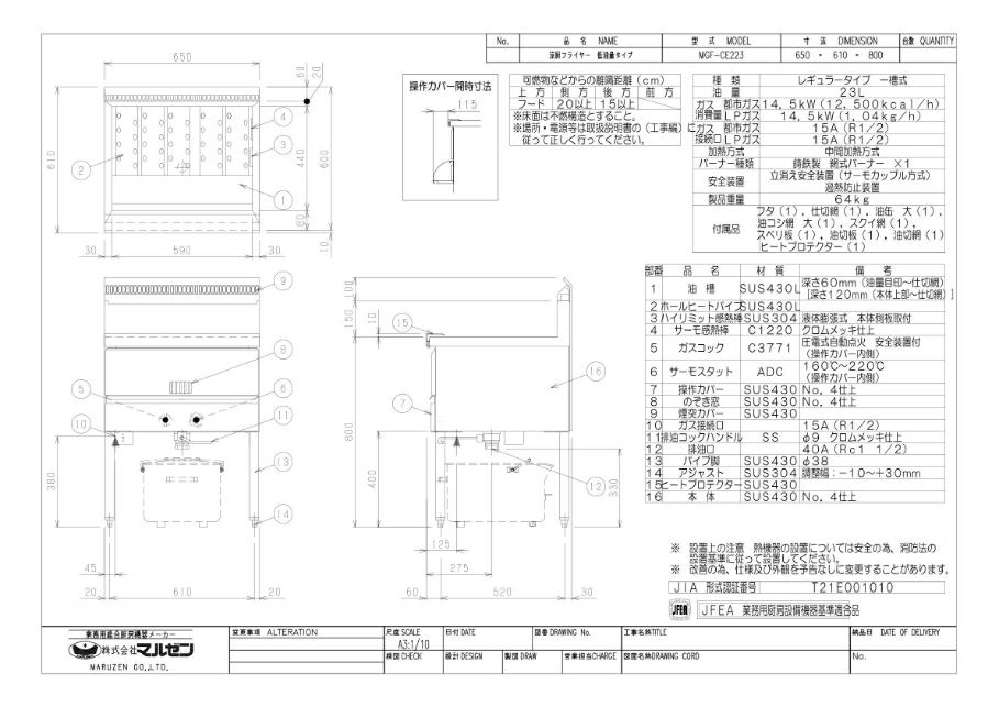 他の画像を見る MGF-CE23 【マルゼン】 涼厨フライヤー 23L 幅650×奥行600×高さ800(mm) 【業務用/新品】【送料無料】 定価 ¥ 427,900 (税込)のところ 販売価格 ¥ 221,903 税込 詳細を見る