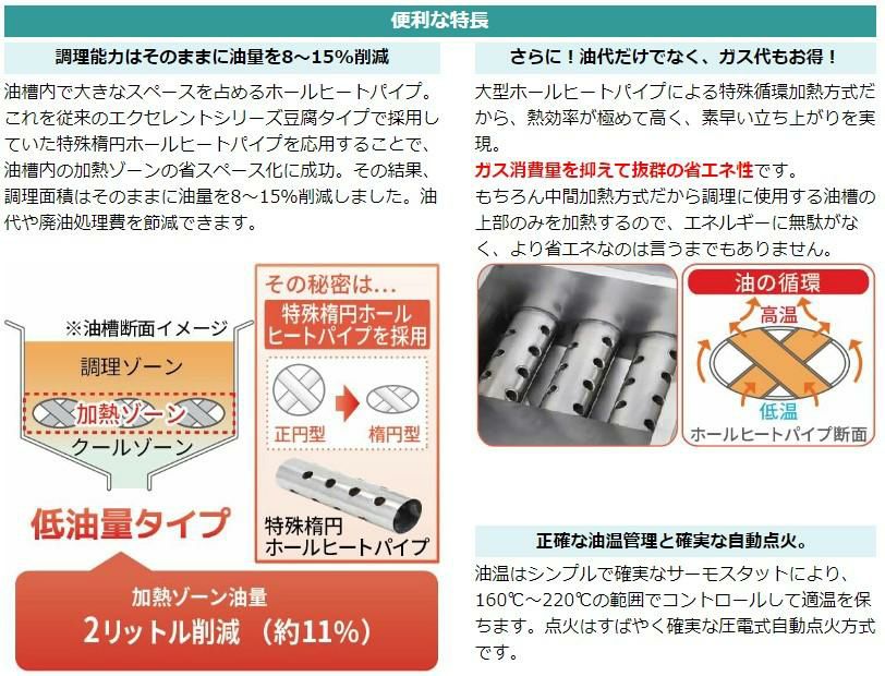 他の画像を見る 油が節約できるフライヤー! TK-CF4-GA18L(旧TK-CF3-GA18-L16) 【キッチンテクノ】 涼厨ガスフライヤー 16L オイルセービング 油槽5年保証付き 幅450×奥行600×高さ800(mm) 【業務用/新品】【送料無料】 定価 ¥ 311,300 (税込)のところ 販売価格 ¥ 155,530 税込 詳細を見る