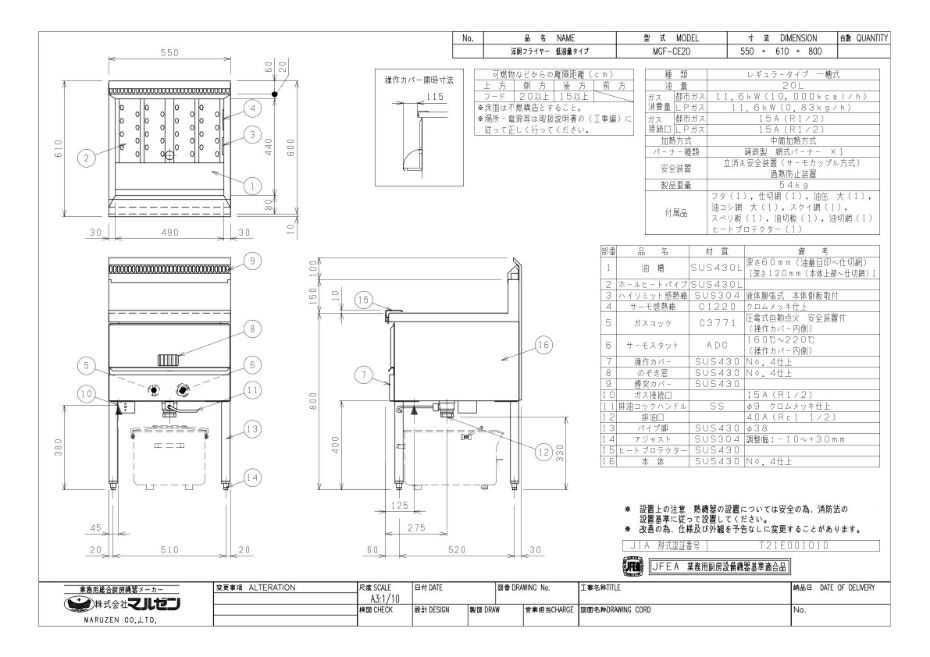 他の画像を見る MGF-CE16 【マルゼン】 涼厨フライヤー 16L 幅450×奥行600×高さ800(mm) 【業務用/新品】【送料無料】 定価 ¥ 310,200 (税込)のところ 販売価格 ¥ 160,105 税込 詳細を見る