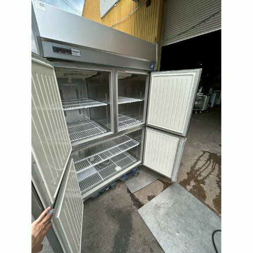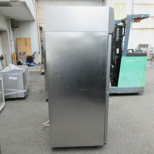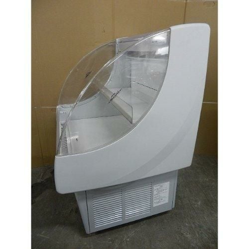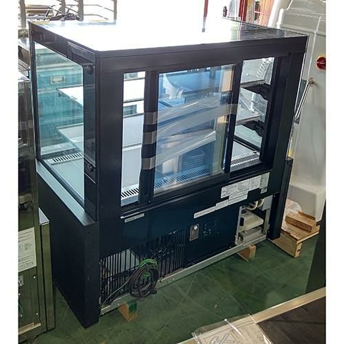 通路スペースをとらないスライド扉式リーチインショーケース。