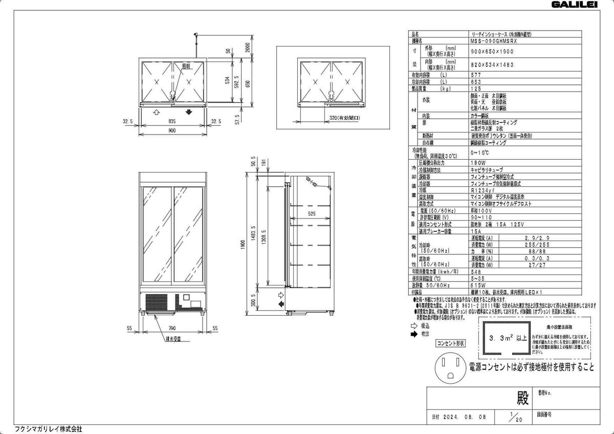 通路スペースをとらないスライド扉式リーチインショーケース。