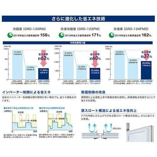 他の画像を見る インバーター制御 ホシザキHRF-120BFT3、パナソニックSRR-LV1561C2の同等品! 【入れ替えキャンペーン商品】GRN-122PDX【フクシマガリレイ】ノンフロン縦型冷凍冷蔵庫 幅1200×奥行650×高さ1950 三相200V【業務用/新品】【送料無料】 定価 ¥ 0 (税込)のところ 販売価格 ¥ 417,315 税込 詳細を見る