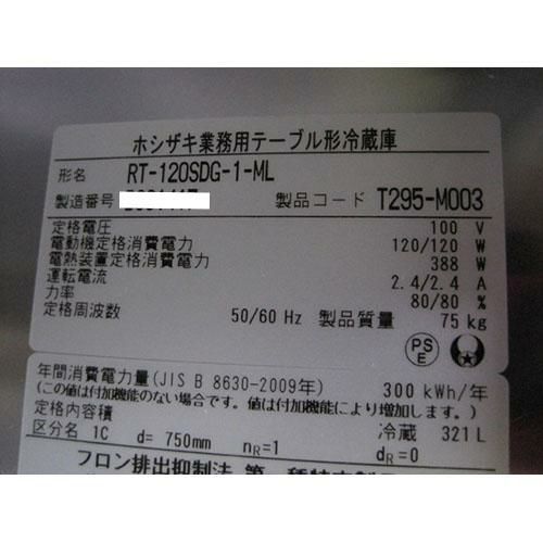 他の画像を見る 委託先様からの配送です。 【中古】冷蔵コールドテーブル ピラーレス ホシザキ RT-120SDG-1-ML 幅1200×奥行750×高さ800 【送料別途見積】【業務用】 販売価格 ¥ 174,800 税込
