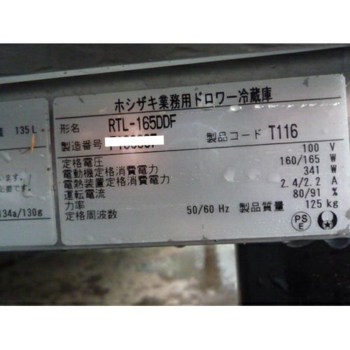 他の画像を見る 委託先様からの配送です。 【中古】冷蔵ドローワーコールドテーブル 50Hz専用 ホシザキ RTL-165DDF 幅1650×奥行750×高さ550 【送料別途見積】【業務用】【委託販売-k2c】 販売価格 ¥ 121,000 税込