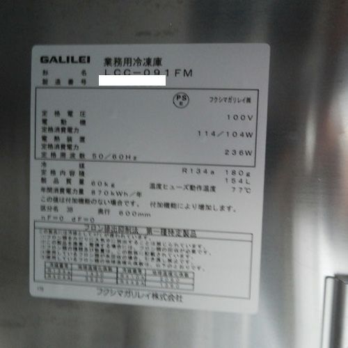 他の画像を見る 委託先様からの配送です。 【中古】冷凍庫 フクシマガリレイ(福島工業) LCC-091FM 幅900×奥行600×高さ800 【送料別途見積】【業務用】【委託販売-k2c】 販売価格 ¥ 145,200 税込