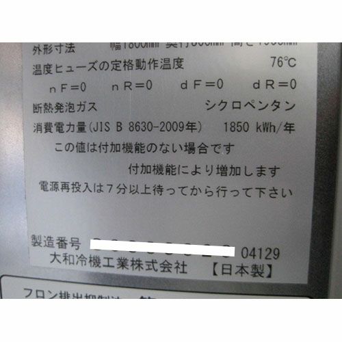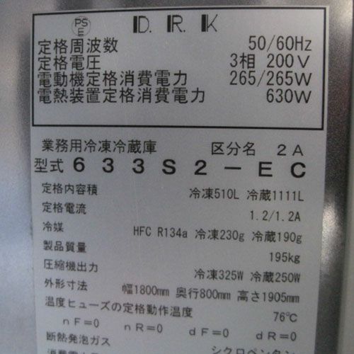 他の画像を見る 委託先様からの配送です。 【中古】冷凍冷蔵庫 2凍4蔵 大和冷機 633S2-EC 幅1800×奥行800×高さ1905 【送料別途見積】【業務用】【委託販売-yck】 販売価格 ¥ 206,999 税込