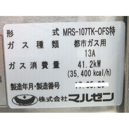 他の画像を見る 委託先様からの配送です。 【中古】2口中華レンジ マルゼン MRS-107TK-OFS特 幅1000×奥行750×高さ800 【送料別途見積】【業務用】 販売価格 ¥ 177,601 税込