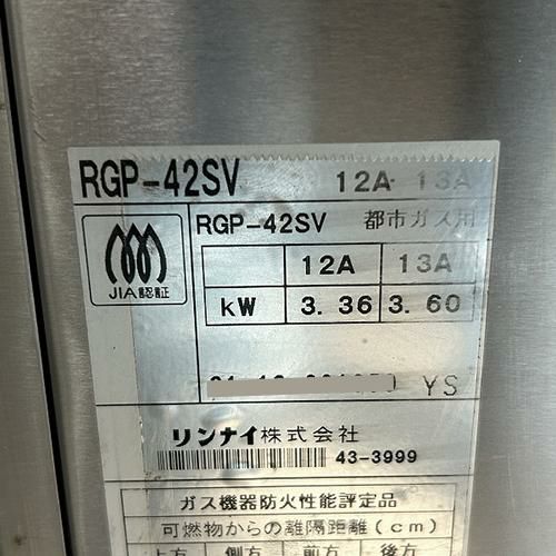 他の画像を見る 直接引取の場合は送料追加なし【川越店】 【中古】ガス赤外線上火式グリラー リンナイ(Rinnai) RGP-42SV 幅260×奥行500×高さ390 都市ガス 【送料別途見積】【業務用】【川越店在庫】 販売価格 ¥ 42,570 税込 完売いたしました 詳細を見る