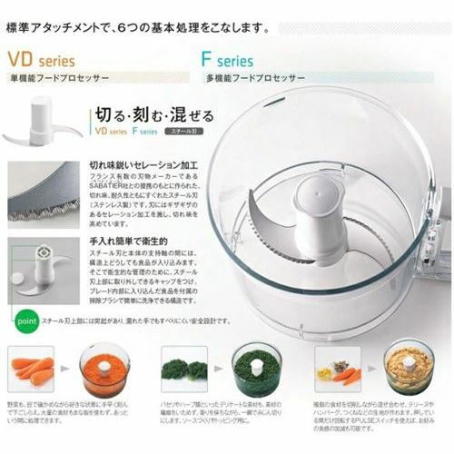 切る 刻む 混ぜる 練る スライス 千切り おろしと幅広く可能なフルスペックモデル※業務用としも、家庭用としてもお使い頂けます。