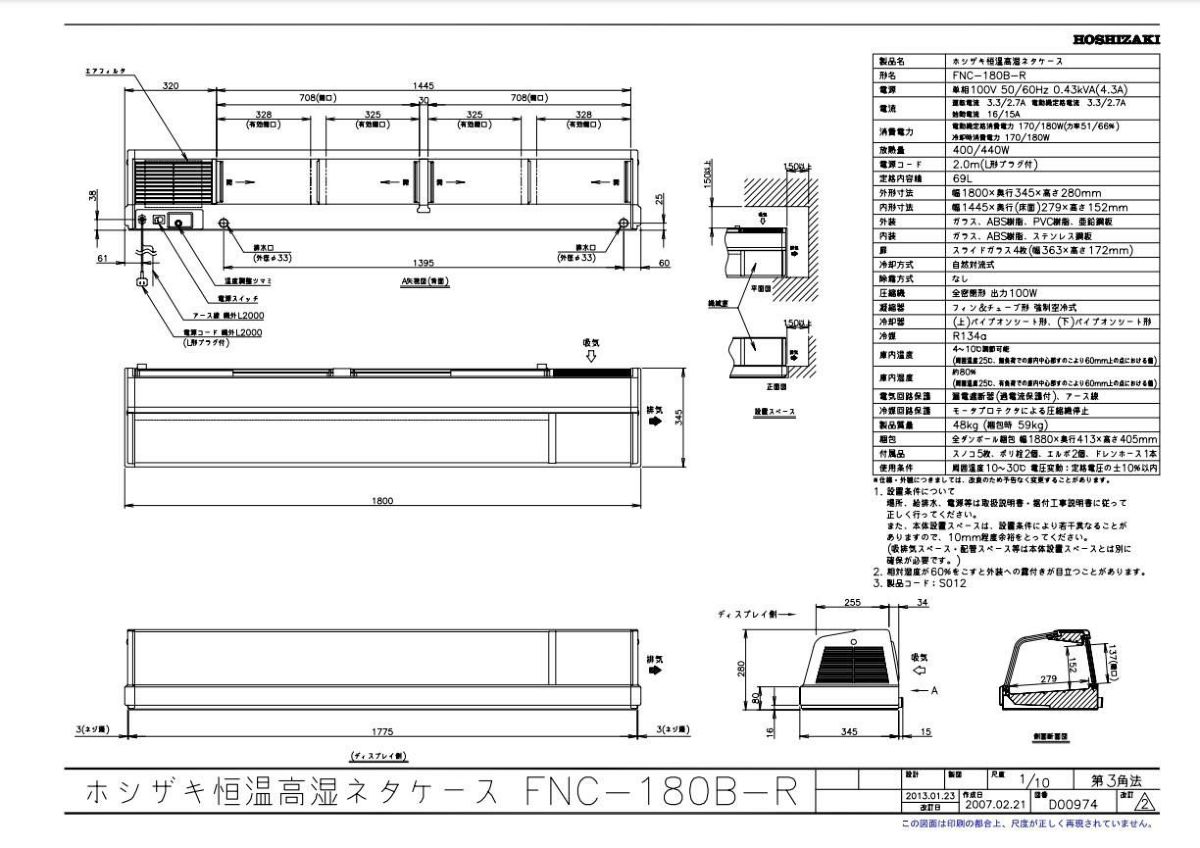 他の画像を見る 【業務用/新品】【ホシザキ】恒温高湿ネタケース FNC-180B-R 幅1800×奥行345×高さ280(mm) 単相100【送料無料】 定価 ¥ 677,600 (税込)のところ 販売価格 ¥ 298,860 税込 詳細を見る