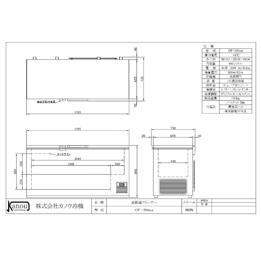 他の画像を見る OF-500SUS 【カノウ冷機】 超低温フリ-ザ- 480L 単相100V 幅1705×奥行730×高さ865(mm) 【業務用/新品】【送料無料】 定価 ¥ 990,000 (税込)のところ ¥ 640,991 税込 詳細を見る