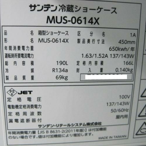 他の画像を見る 委託先様からの配送です。 【中古】冷蔵ショーケース サンデン MUS-0614X 幅600×奥行450×高さ1400 【送料別途見積】【業務用】【委託販売-yck】 販売価格 ¥ 103,500 税込 完売いたしました 詳細を見る