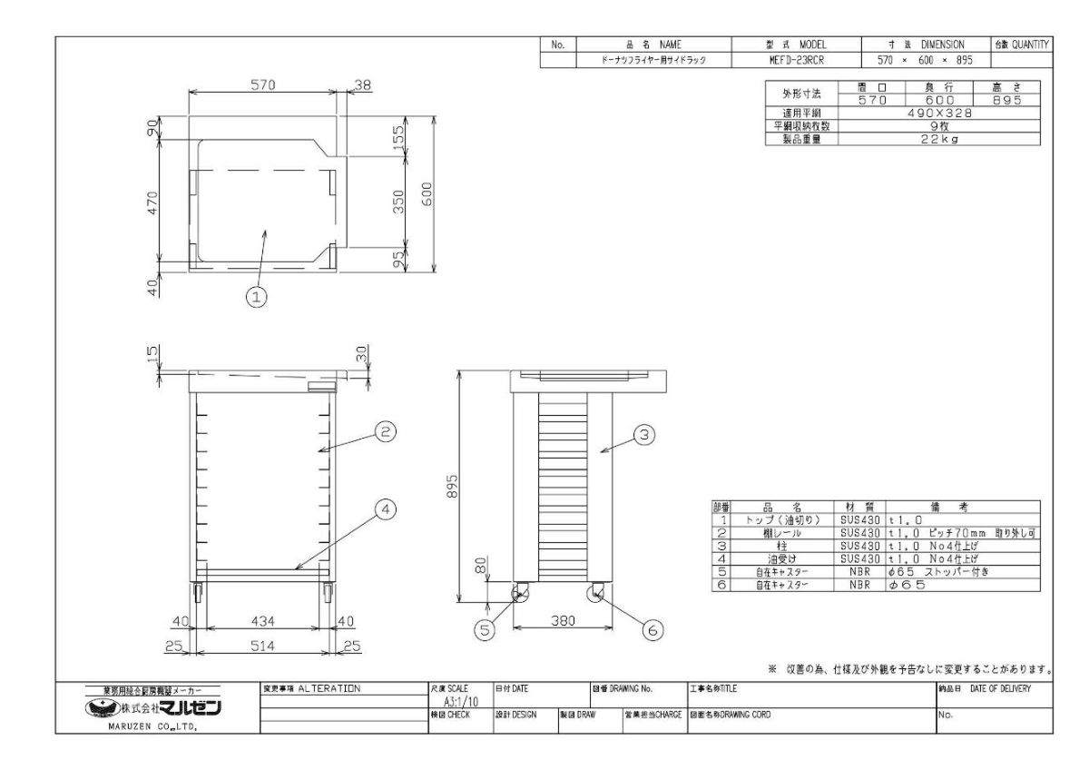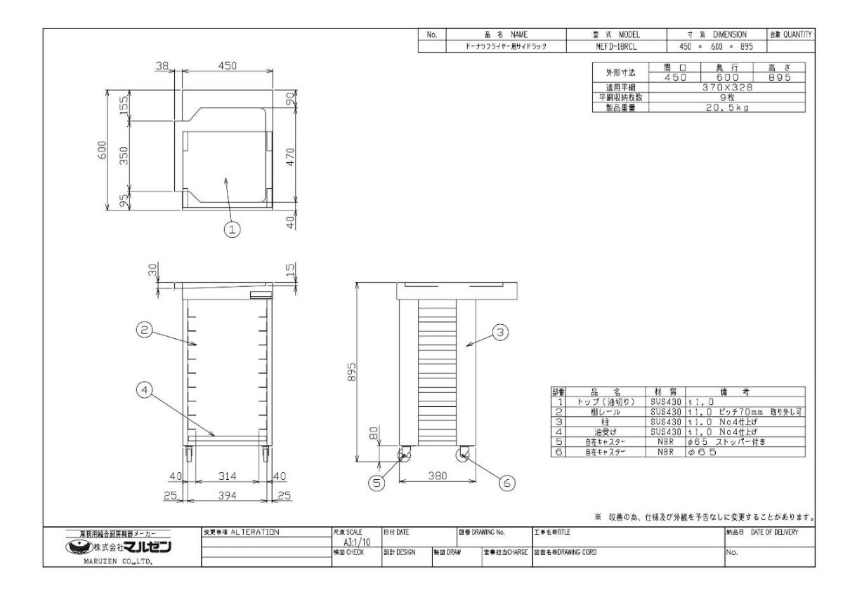他の画像を見る 【業務用/新品】【マルゼン】ドーナツフライヤー用サイドラック MEFD-23RCR 幅570×奥行600×高さ895(mm)【送料無料】 定価 ¥ 107,800 (税込)のところ 販売価格 ¥ 60,762 税込 完売いたしました 詳細を見る