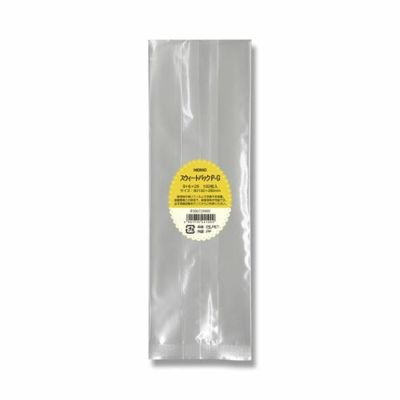 合掌貼りと呼ばれるガゼットタイプのポリ袋で、主に焼菓子などの包装に使用されます。