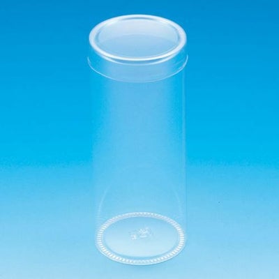 透明性の高いPET素材の円筒形ボックスです。