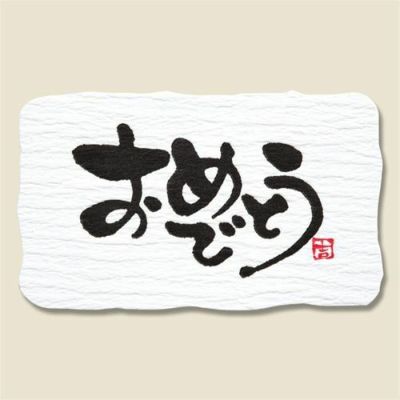 和紙風のクレープ紙に「おめでとう」の文字が入ったシールです。