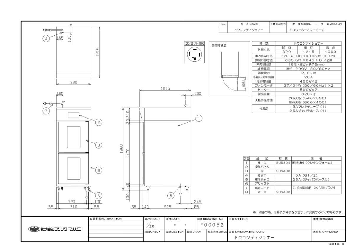 他の画像を見る 【業務用/新品】【マルゼン】ドウコンディショナー 空冷仕様 FDC-S-32-2-2 幅820×奥行1215×高さ1960(mm) 三相200V【送料無料】 定価 ¥ 2,508,000 (税込)のところ 販売価格 ¥ 1,848,000 税込 詳細を見る