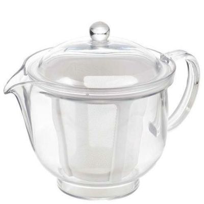 ●軽くて割れないプラスチック製ティーポット。網目の細かいポリエステルメッシュです。