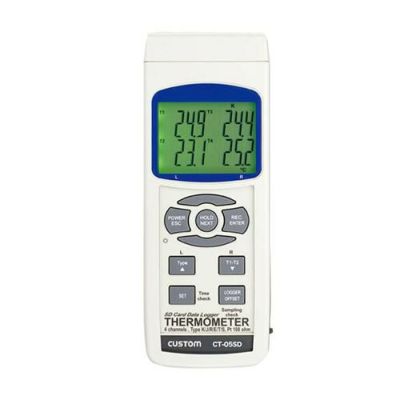 SDカードによるデータ記録が可能で、同時に4つのセンサーを接続、温度を測定できる温度データロガーです。各種熱電対(K/J/T/E/R/S)と白金測温抵抗体pt100の温度計測が可能です。同時計測(熱電対:4点、pt100Ω:2点)が可能です。オートパワーオフ機能、T1-T2演算機能、測定値のMAX(最高値)/MIN(最低値)表示機能、ホールド機能付きです。