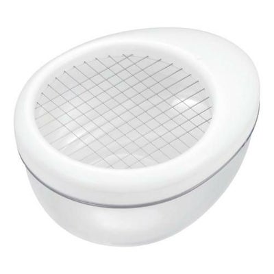 ●ワイヤーにゆでたまごを押し付けセットし、殻を剥いたゆでたまご カットします。をのせます。 ※金属製のスプーンは使用しないでください。