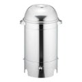 ●冷燻法 生ハム、スモークサーモン、パストラミー 燻煙材に豆炭をおいて25度以下の低温で、熱を伝えず約 1~2時間煙のみをかけるなどして長時間かけて仕上げる 方法です。オーブン21、マルチオーブン特長直火焼きや蒸し焼きと違い、スモーク状態で焼き上げるために、肉の味、つや、香り、柔らかさなどは、これまでの器具より格段優れています。本格スモークを楽しみたい方は、スモークチップ、スモークウッド、お茶葉等使いますと、燻製がお手軽にお作りいただけます。取り扱いや清掃も簡単にできる構造になっています。