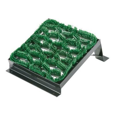 ●靴を履いたまま片足づつ泥を落とせるよ う、フレームに傾斜を付けています。ブラシサイズ大:300×300mm,小:225×265mm