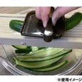 長い食材を保護ホルダーで押さえてスライスするときは、刃を通過したあたりで、保護ホルダーの押さえる位置を変えてあげると作業しやすいです。(サンドウィッチに使うキュウリを一本丸々スライスするときなど)