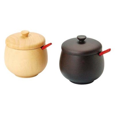 木製・蓋付丸型薬味入(ダークブラウン)*スプーン付/業務用/新品/小物送料対象商品