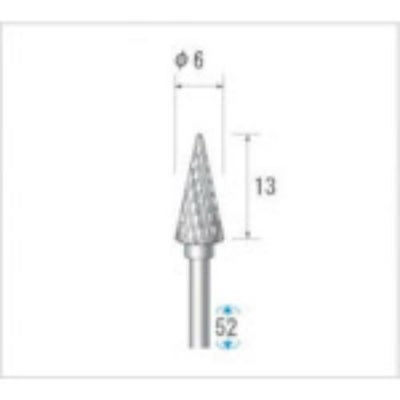 仕様:●形状:テーパー型(ダブルカット)●刃径(mm):6●刃長(mm):13●軸径(mm):2.34●タイプ:テーパー●最高使用回転数(rpm):40000●全長(mm):52