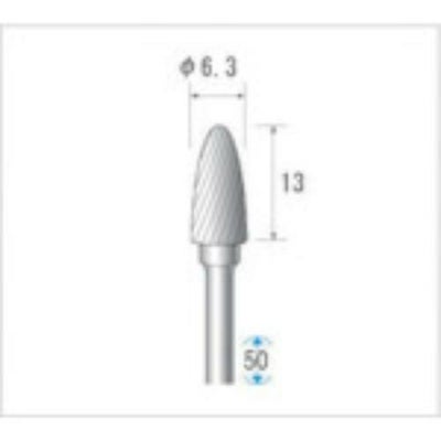 仕様:●形状:砲弾型(シングルカット)●刃径(mm):6.3●刃長(mm):12.7●軸径(mm):3●タイプ:砲弾●最高使用回転数(rpm):40000●全長(mm):50