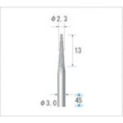 仕様:●形状:ダイヤカット●刃径(mm):2.3●刃長(mm):13●軸径(mm):3●タイプ:テーパー●最高使用回転数(rpm):60000●全長(mm):45