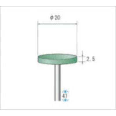 仕様:●粒度(#):320●形状:平●外径(mm):20●幅(mm):2.5●軸径(mm):3●軸長(mm):38.5●最高使用回転数(rpm):15000●色:グリーン●全長(mm):41●砥粒:WA