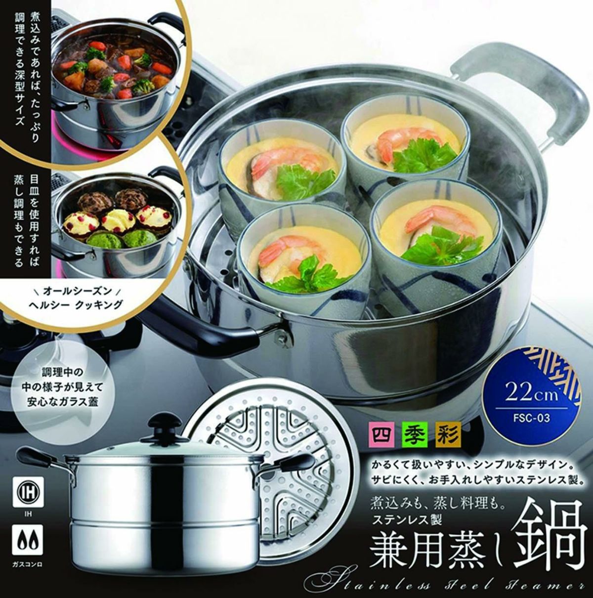 他の画像を見る FSC-03 四季彩 -しきさい- IH対応 兼用蒸し鍋 22cm/業務用/新品/小物送料対象商品 定価 ¥ 3,300 (税込)のところ 販売価格 ¥ 1,980 税込 完売いたしました 詳細を見る