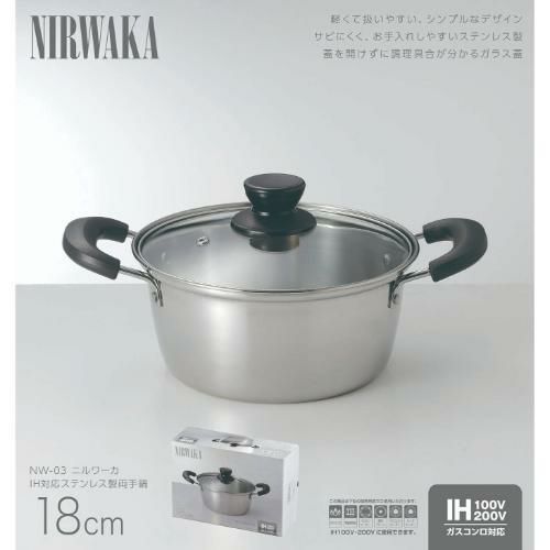他の画像を見る NW-03 NIRWAKA -ニルワーカ- IH対応 ステンレス製両手鍋 18cm/業務用/新品/小物送料対象商品 定価 ¥ 1,980 (税込)のところ 販売価格 ¥ 1,188 税込 完売いたしました 詳細を見る