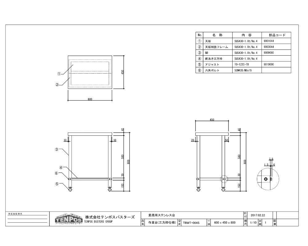 他の画像を見る TBWT-064 【テンポスオリジナル】【組立式】ステンレス作業台 幅600×奥行450×高さ800mm【業務用/新品】【送料無料】 定価 ¥ 28,160 (税込)のところ 販売価格 ¥ 13,630 税込